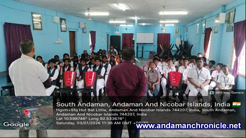 Sri Vijaya Puram, Jan. 6: The Department of Animal Husbandry & Veterinary Services advanced its Animal Birth Control (ABC) campaign in Hut Bay, Little Andaman with dedicated school awareness programmes on Jan. 2, reaching more than 100 students across two institutions.