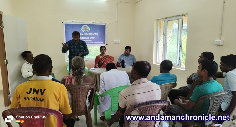 Mayabunder, Nov. 14: The DAH&VS conducted a series of Artificial Insemination (AI) awareness camps under Gram Panchayats Rampur, Chainpur, Pahalgaon, and Kishori Nagar, falling under the jurisdiction of the Veterinary Hospital, Webi, with the objective of promoting scientific cattle breeding and uplifting rural livelihoods.