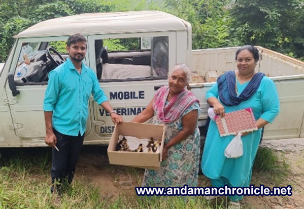 Mayabunder, Nov. 10: The Department of AH&VS distributed 363 chicks, ducklings, and quails to 16 farmers in Rampur Panchayat, Mayabunder, on Nov. 8. The initiative aimed to promote backyard poultry farming and enhance livelihood opportunities in the region.