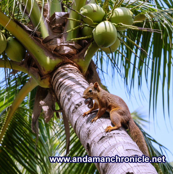 Then, a sudden, loud thud echoed from a tin sheet covering a nearby structure. I looked up and saw a squirrel. It had just made a daring jump from the crown of a very tall coconut tree onto the tin roof, and immediately scampered down to the ground near where I stood. Observing its frantic, focused movements with constant squeaking sound, scampering towards me, I instantly realized this could be the mother of the baby squirrel.