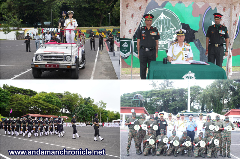 On this occasion Vice Admiral Ajay Kochhar, AVSM, NM, CINCAN, laid a wreath at Bayonet Square to honour the brave before reviewing a ceremonial Joint Services Parade at Military Station Brichgunj. He congratulated the units who were conferred with Appreciation lauded personnel and families for their dedication and appreciated the drill, coordination and participation of women personnel and media representatives.