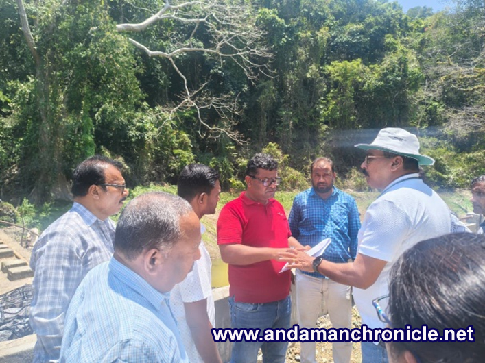 Sri Vijaya Puram, April 24: During a visit on April 18, 2026, the Commissioner-cum-Secretary (PWD), Dr. Sachin Shinde, IAS, accompanied by the Chief Engineer, APWD, and other officials, identified a natural pond in the Caddlegunj area with an approximate storage capacity of 6 million litres as a potential water source.
