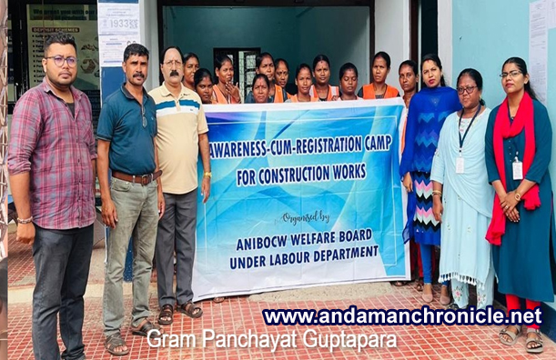 Sri Vijaya Puram, Nov. 14: The Andaman & Nicobar Islands Building and Other Construction Workers Welfare Board (A&NBOCWWB) organized a series of Awareness-cum-Registration Camps for construction workers in the areas of Gram Panchayat Sippighat and Gram Panchayat Guptapara, including nearby construction sites, from Nov. 1 to 8.