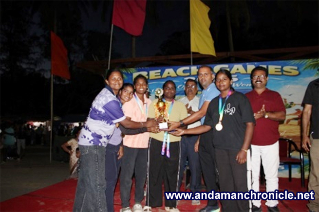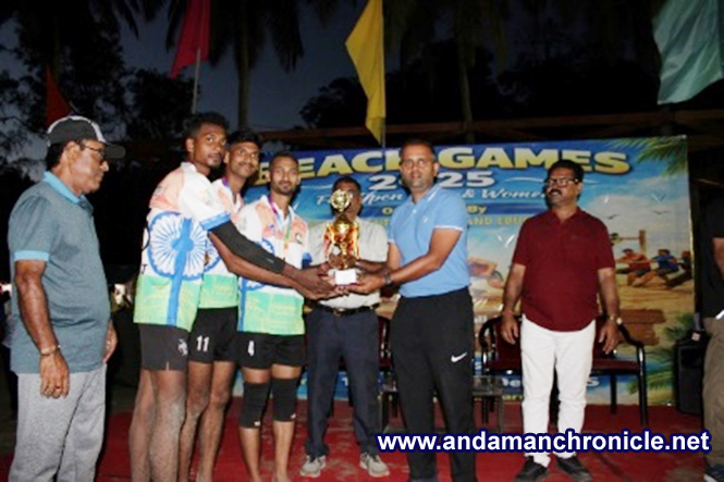 Sri Vijaya Puram, Dec. 22: The Beach Games – 2025 organized by Directorate of Sports and Youth Affairs in collaboration with Department of Education in Open Men and Women Category from 19th December to 21st December 2025 at Corbyn’s Cove Beach, Sri Vijaya Puram in various Sports discipline i.e. Volleyball, Kabaddi, Tug of War, 50m Sprint, 100m Sprint, Football (7 a side), Sepak Takraw, Mallakhamb and Pencak Silat. The main objective of the beach games is to promote a healthy and drug free lifestyle among the youth.