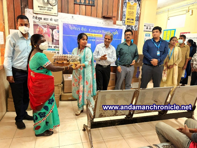 In this context, Canara Bank has joined the initiative and committed to providing nutritional support to 50 TB patients in South Andaman District for a period of one year. To mark the initiation of this support, a nutritional kit distribution programme was organised recently at the District TB Centre, GB Pant Hospital Complex, Sri Vijaya Puram, in the presence of Shri Deblin Dutta, Chief Manager, Canara Bank, Dr. H. M. Siddaraju, Director of Health Services, and Dr. P. Lal, Joint Secretary (NTEP).