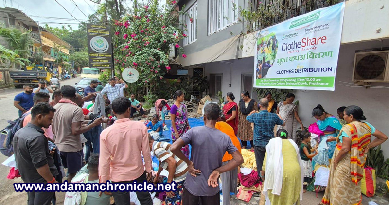 Sri Vijaya Puram, Dec. 28: HumaneTouch, in association with Bageecha and under the support of Sanjay Meshack (Ex-Municipal Councillor), successfully organized a ClotheShare programme at Bageecha, Libra Cottage, Brichgunj Chowk, Prothrapur on 28th December 2025 at 10:00 AM, benefiting nearly 100 families from the surrounding areas. The initiative, held on Sunday morning, aimed to support underprivileged families by providing free clothing as per their needs and preferences.