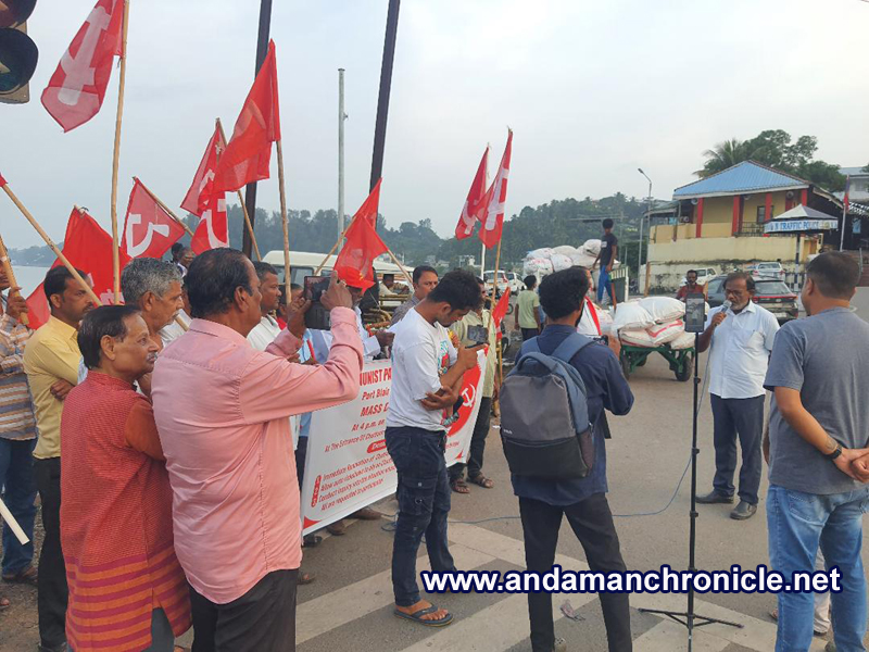 Senior leader Pronob Banerjee, SP Kalairajan, State Organising Committee Member and NKP Nair, Member Port Blair City Area Committee also addressed the gathering. A large number of people participated in the mass demonstration.