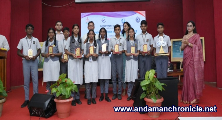 As part of the celebrations, the Department organized multiple competitions, including an Essay Writing Competition on “Fisheries Potential of A&N Islands: Way Forward for Fisheries Economy Development” for students of the Zoology Department, JNRM, and Marine Biology students of Pondicherry University; a Quiz Programme on “Wonder World of Fishes”; and a Poster Making Competition on “Marine Biodiversity of A&N Islands” for students of Government Senior Secondary Schools. These activities were designed to inspire young minds, foster curiosity about the marine ecosystem, and encourage their active involvement in conserving the Islands’ rich biodiversity. Prizes were distributed to the winners as recognition of their creativity and awareness.