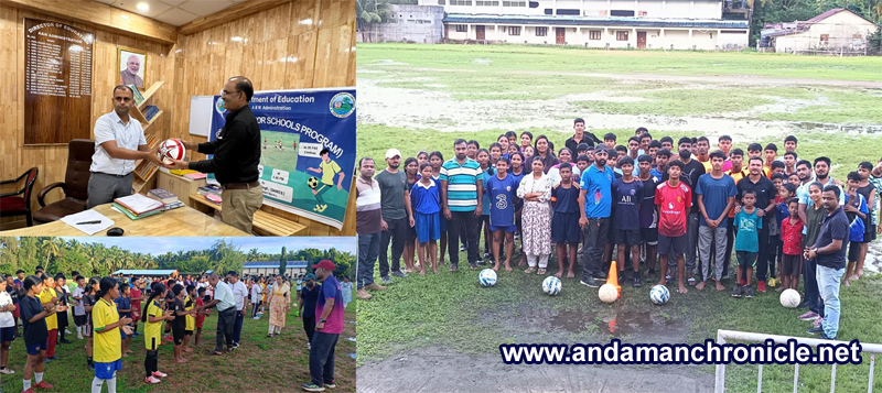 Sri Vijaya Puram, Oct. 10: In a significant step towards promoting sports and reducing mobile addiction among children, Shri. Vikram Singh, Director of Education, launched the “Football for School” (F4S) initiative through video conference in 35 F4S centres across the Islands on 10th October 2025 at 4:00 pm. The program will provide advanced football coaching to young enthusiasts in the age group of 8-17 years, with a special focus on girl child development.