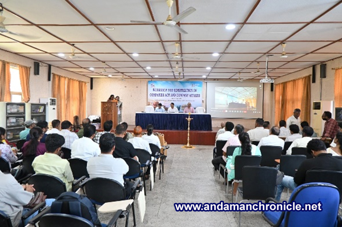 Sri Vijaya Puram, April 24: The Directorate of Industries, A&N Administration in collaboration with the Registrar of Companies, Chennai successfully organized a one-day workshop on “Sensitization on Companies Act and Company Affairs” today at the Conference Hall of the Directorate of Industries. The event, conceived under the guidance of Smti. Pallavi Sarkar, IAS, Secretary (Industries), aimed to demystify corporate laws, promote business formalization, and accelerate Ease of Doing Business in the islands, in alignment with Aatmanirbhar Bharat and Make in India vision.