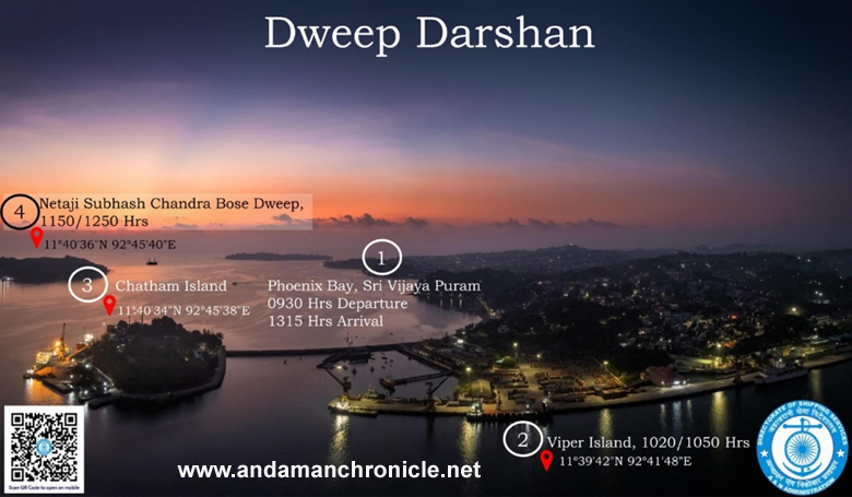 Sri Vijaya Puram, Nov. 11: After the encouraging response to the Barren Island Volcano Cruise, the Directorate of Shipping Services under the guidance of A&N Administration is delighted to announce yet another immersive maritime experience — the ‘Dweep Darshan’. This unique harbour cruise offers visitors an opportunity to relive the Islands’ freedom movement legacy while enjoying a panoramic view of Sri Vijaya Puram’s harbour and surrounding islets.