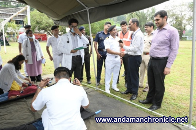 With the help of the A&N Command, aerial surveys and airdropping operations were conducted over low-lying and inundated areas in North & Middle Andaman and Nicobar districts. All key activities such as evacuation, search and rescue, medical support, setting up of relief shelters, use of equipment and materials, provision of relief, transport arrangements (air/ship/road), and deployment of personnel, volunteers, and NGOs were successfully executed to manage the simulated earthquake and tsunami scenario.