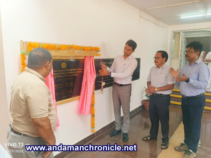 Car Nicobar, Dec. 12: A major milestone in the development of Car Nicobar’s cultural and educational infrastructure was achieved today with the laying of the foundation stone for the Renovation/Modernization of the District Library Building in Car Nicobar. The event was graced by Shri Amit Kale, IAS, Deputy Commissioner, and Shri Lionald Nicomede, Chairman of the Tribal Council, Car Nicobar, along with distinguished guests from various Departments