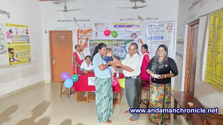 Sri Vijaya Puram, April 10: On the occasion of World Homoeopathy Day 2026, a ‘Healthy Baby and Happy Mother Show’ was conducted for the first time at Chowra Island on Apr. 8. The programme was successfully organized by Dr. Shabnam Salim, Medical Officer (Homoeopathy), under the AYUSH Unit of CHC Nancowry and under the supervision of Dr. (Lt. Col.) Nirmal Kumar Bajpayi, Medical Officer (In-charge), CHC Nancowry.