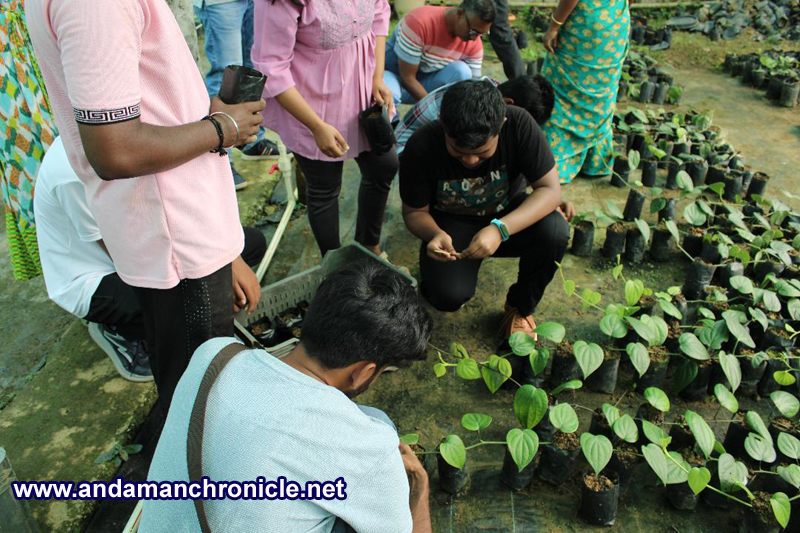 Nursery raising is one of the important agri-businesses that has good potential in the island conditions. However, lack of knowledge and practical exposure restricts the island youth in taking up nursery as a profession. In order to bridge this gap and enable them in starting own enterprises, the programme was conducted involving series of sessions including hands on learning, practical demonstrations, field visits, presentations and interactions. The training began with presentation on basics of plant propagation, following which the trainees were taken to an exhibition area wherein tools and inputs used in the gardening operations were displayed. A demonstration on the preparation of rooting hormones was made for making the trainees understand the details involved in the processes of plant multiplication. The trainees visited Horticultural Plants Propagation Unit of the institute wherein they were demonstrated with different type of protected structures, arrangement and operation of irrigation systems, sensors, and control of microclimate.