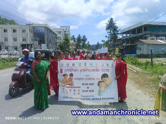 Rangat, April 9: The ICDS Project Rangat today observed the inaugural day of the 8th Rashtriya Poshan Pakhwada with great fervor and community spirit.  An awareness rally aimed at sensitizing the public on nutritional health was flagged off by Assistant Commissioner (Rangat), Shri Dipanshu Vhora, in the presence of Tehsildar, Rangat & BDO, Rangat. Anganwadi Workers carrying placards and chanting slogans like ‘Maximizing Brain Development in the first six years of life’ marched through vantage points of Rangat area. Following the rally, a formal function was held at the Panchayat Samiti Hall, Rangat. In his keynote address, the Assistant Commissioner, Rangat highlighted the broad objectives of the Poshan Pakhwada.