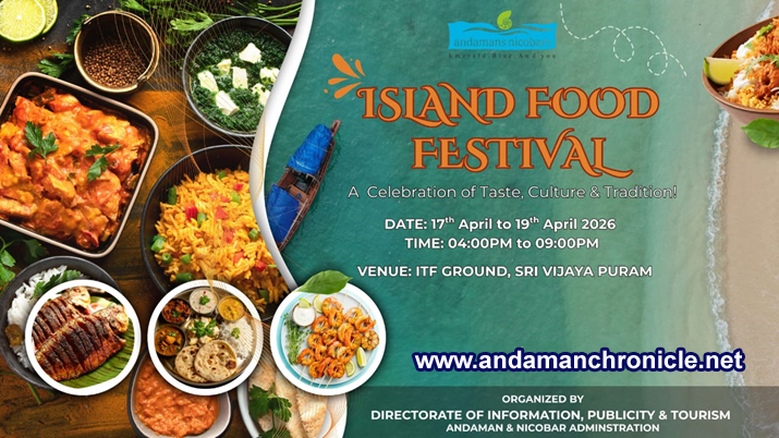 Sri Vijaya Puram, April 9: The Department of Tourism, A & N Administration is organizing the Island Food Festival 2026 with the theme “A Celebration of Taste, Culture & Tradition” from 17th to 19th April, 2026 at ITF Ground, Sri Vijaya Puram.