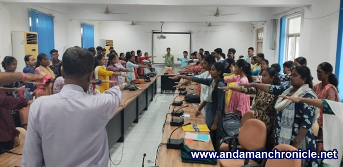 Sri Vijaya Puram, Nov. 6: An awareness programme on ‘Ill Effects of Alcohol and Drug Abuse’ under the Nasha Mukt Bharat Abhiyaan was organized by the Directorate of Social Welfare. The session was led by the Project Assistant (NAPDDR) and attended by students of B.Sc. First Year (Geography) from JNRM. The resource persons for the session were, Medical Officer (IRCA), Psychologist-cum-Counselor (NTCP), Directorate of Health & Services, Senior Officials from Police Department Anti-Narcotics CID.