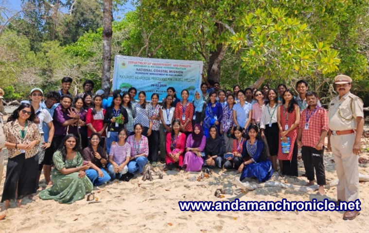 Sri Vijaya Puram, March 29: The Working Plan Division of Forest Department, organised Mangrove Awareness Programme for college students and frontline staff of the Division at Mahatma Gandhi Marine National Park (MGMNP), Wandoor on 28th & 29th March, 2026. The awareness programmes were conducted under Biosphere Management Programme of National Coastal Mission, Govt. of India with the objective of generating awareness among staff and students on mangrove conservation and management.