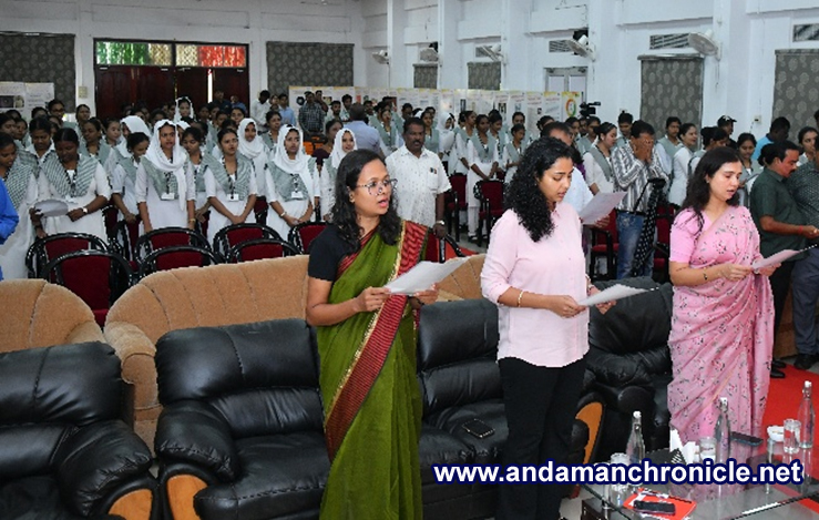 Sri Vijaya Puram, Nov. 7: As part of the year-long commemoration of 150 Years of ‘Vande Mataram’, being celebrated under the aegis of the Ministry of Culture, Government of India, the Directorate of Art & Culture, Andaman and Nicobar Administration organised a mass singing of the full version of ‘Vande Mataram’ in the Auditorium of Tagore Government College of Education today.