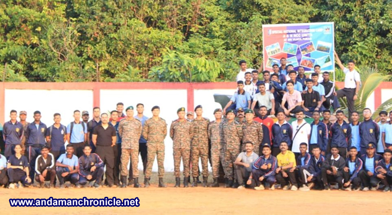 Sri Vijaya Puram, Jan. 15: As part of the ongoing Special National Integration Camp (SNIC), NCC cadets undertook an educational and exposure visit to Chidiyatapu Biological Park Beach under the leadership of Group Commander & Camp Commandant Col Hariteja. During the visit, the cadets had an enriching interaction with the Brigadier GP Singh Army Component Commander in the presence of Commanding Officer NCC ARMY Unit Col KY Singh, who addressed them on the role, responsibilities, and preparedness of the Indian Army, particularly in the island territories.