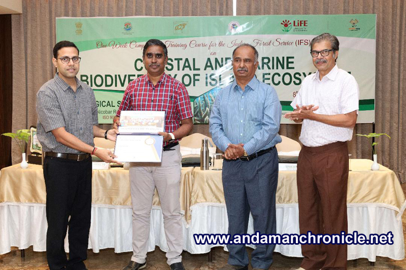 Sri Vijaya Puram, Dec. 17: The one-week compulsory training course on “Coastal and Marine Biodiversity of Island Ecosystem” for the Indian Forest Service (IFS) Officers conducted by the Zoological Survey of India, Andaman & Nicobar Regional Centre during 8th – 12th December, 2025 concludes. The training programme is sponsored by the Ministry of Environment, Forest and Climate Change (MoEFCC), Government of India. A total of 21 IFS officers from various states including Jharkhand, Punjab, Himachal Pradesh, Andhra Pradesh, Bihar, Manipur, Orissa, Uttar Pradesh, Telangana, Rajasthan, Karnataka, Chhattisgarh, Gujarat and Haryana participated in the programme. The valedictory function was held on 12th December, 2025 at Sea Shell Coral Cove, Minnie Bay. Dr. R.S.C. Jayaraj, IFS, Former Principal Chief Conservator of Forests (PCCF), A&N islands was the Chief Guest and Dr. Deepak Apte, Director – ARC (Ecology & Conservation), DES Pune University, Pune & Former Director, Bombay Natural History Society, Dr. S. Dinesh Kannan, IFS, Chief Conservator of Forests (Wildlife) (CCF), Department of Environment and Forests, A & N Islands was the special guests.
