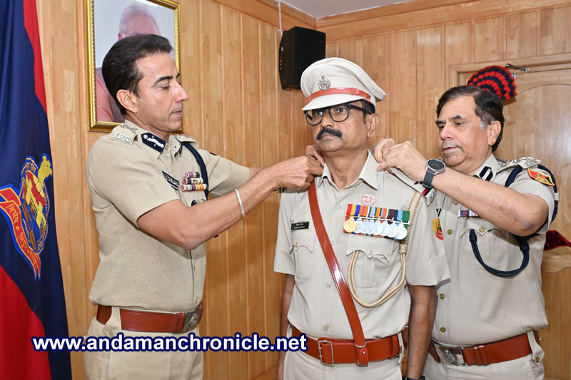 In this connection, on 29th January 2026, a pipping ceremony was held at the Police Headquarters, presided over by Shri Hargobinder Singh Dhaliwal, IPS, Director General of Police, Andaman & Nicobar Islands. On the occasion, five police personnel were conferred with Special Grade ranks, including two Head Constables designated Assistant Sub-Inspector (Special Grade) and three Constables, including two Lady Constables, designated as Head Constable (Special Grade).