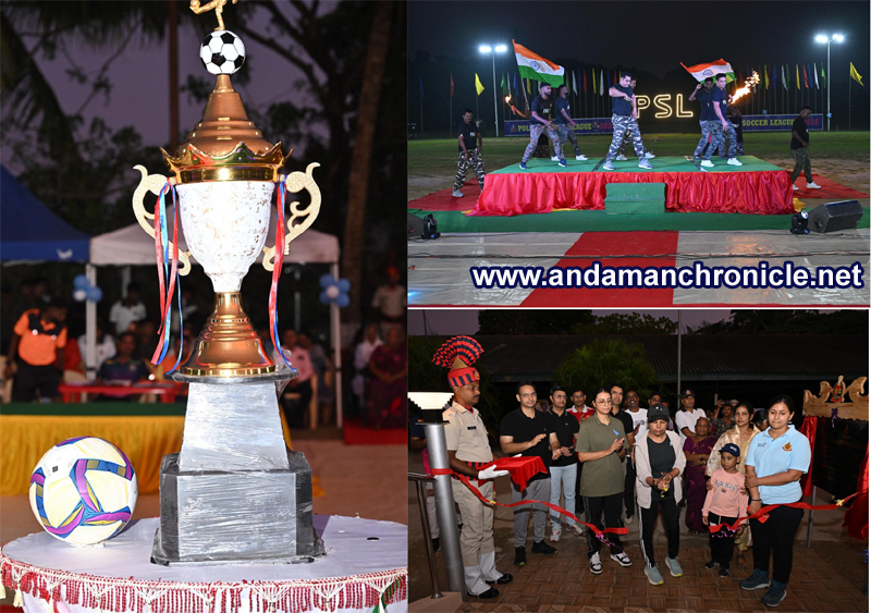 Sri Vijaya Puram, Nov. 11: The inaugural season of the much-awaited Police Soccer League – 2025 (PSL–2025) commenced today with an impressive opening ceremony followed by a thrilling inaugural match at IRBn Headquarters, Port Mout. The event also witnessed a solemn homage as the playground at IRBn Headquarters was named after Late Head Constable (GD) Goma Barraik, who laid down his life in the line of duty, to honour and cherish the legacy of the fallen hero in the presence of his family members.