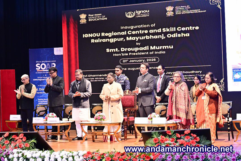 Rairapur, Jan 2: IGNOU marked a significant milestone on the New Year with the successful inauguration of its Regional Centre and Skill Centre at Rairangpur, Mayurbhanj, Odisha. The Hon’ble President of India, Smt. Droupadi Murmu, virtually inaugurated IGNOU’s Rairangpur Regional Centre and Skill Centre on Thursday, January 1, 2026 at the Rashtrapati Bhavan Cultural Centre, New Delhi. The inauguration was held in the benign presence of Sh. Dharmendra Pradhan, Minister of Education; Sh. Jayant Chaudhary, Minister of State (Independent Charge); Sh. Vineet Joshi, Secretary, Department of Higher Education; Sh. Sanjay Kumar, Secretary of School Education and Literacy; Ms. Debashree Mukherjee, Secretary, Ministry of Skill Development & Entrepreneurship; Prof. Uma Kanjilal, IGNOU’s Vice Chancellor and other esteemed dignitaries. The event was also attended virtually by participants from IGNOU Regional Centre and Skill Centre at Rairangpur, Odisha and other regional centres across India.