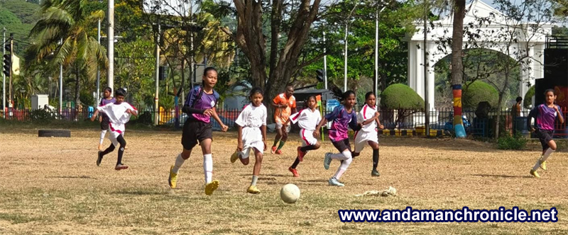 Sri Vijaya Puram, Feb. 11: The Inter Primary School Football League-Cum-Knockout Tournament 2026, organised by the Deputy Education Office, South Andaman, continued today at GSSS Girls Ground & GSSS Bathu Basthi Ground witnessing spirited competition as students from across the South Andaman Zone displayed determination, skill and team spirit before an enthusiastic audience.