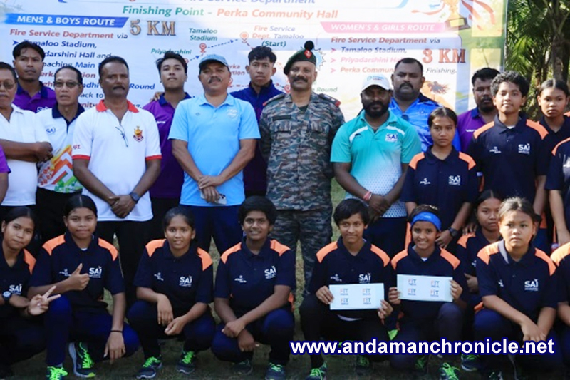 Car Nicobar, March 22: The Sports Authority of India (SAI), STC Car Nicobar, successfully organized a Marathon Cross Country Event under the Fit India Tribal Sports Festival – Car Nicobar 2026 yesterday in association with Fire Service Department. The event witnessed enthusiastic participation with 104 participants in the Men’s & Boy’s category and 150 participants in the Women’s & Girl’s category. The Women’s & Girl’s race was flagged off by Shri Derick Jacob, 1st Headman of Kinyunka Village, followed by the Men’s & Boy’s race flagged off by Lt. Col. Shrihari Kugaji, Company Commander, 172 Infantry Battalion (TA) Madras. “A key highlight of the event was the ceremonial Water Salute presented by the Fire Department, adding dignity and grandeur to the occasion. The arrangement was carried out under the supervision of Shri Bimal Roy, ASI, Fire Service Department, Car Nicobar.