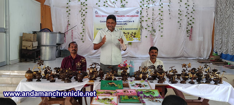 Sri Vijaya Puram, Jan. 9: The Directorate of Industries, Andaman and Nicobar Administration, successfully conducted a 15-day short-term skill development training program on “Handicrafts (Coconut Shell, Wooden and Cane & Bamboo Products)” at Guptapara Gram Panchayat, South Andaman from 23rd December, 2025 to 9th January, 2026.