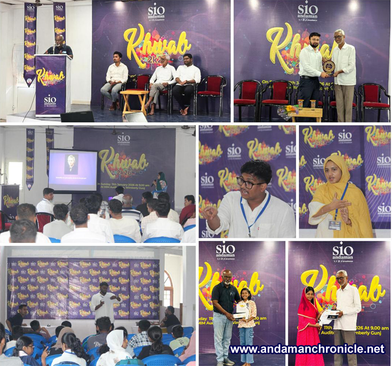 Wimberlygunj, Jan 18: The Students Islamic Organisation of India (SIO), Andaman & Nicobar Islands successfully organised its annual talent fest “KHWAB 2K26” during the second week of January, 2026, drawing enthusiastic participation from students across the islands. The initiative aims to nurture creativity, confidence and intellectual capability among youth by providing constructive platforms for expression and healthy competition. As part of this year’s conduct, a preliminary round was held on 4th January 2026 to shortlist and prepare participants for the final stages. The main fest took place on 11th January 2026 at the MIM Auditorium, Wimberlygunj, where the final rounds of all competitive segments were conducted along with the official inauguration ceremony.