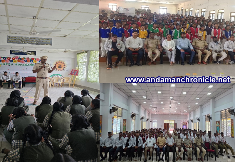 Sri Vijaya Puram, April 19: The South Andaman District Police successfully conducted a series of various awareness programmes across schools in South Andaman District. These initiatives focused on critical issues such as Drug abuse, Cybercrime, Traffic regulations and POCSO Act.