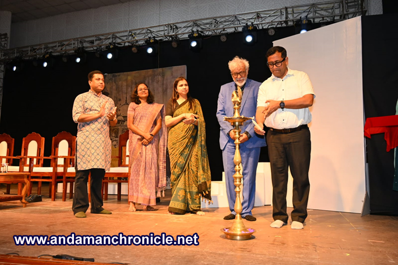 Sri Vijaya Puram, Feb. 13: The much-awaited three-day Theatre Festival got underway today with a play titled ‘Taj Mahal Ka Tender’ staged at Dr. B.R Ambedkar Auditorium, SVPMC. The celebrated Hindi satirical play left the audience in splits. The Directorate of Art & Culture, A&N Administration, in collaboration with National School of Drama is organising a three-day theatre festival as part of the 25th Bharat Rang Mahotsav – International Theatre Festival of India of the National School of Drama, (NSD), New Delhi. This prestigious three-day event brings world-class theatrical performances to the Islands. The Chief Secretary, A&N Administration, Dr. Chandra Bhushan Kumar, IAS was the chief guest on the occasion. The Commissioner-cum-Secretary, A&N Administration, Ms. Chanchal Yadav, IAS also graced the occasion.