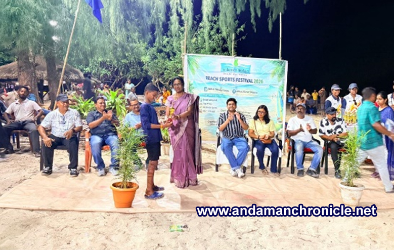 Rangat, April 19: The two-day Beach Sports Festival was successfully conducted on 18th and 19th April, 2026 at Raman Bagicha Beach, Nimbutala, Rangat, under the Calendar of Events 2025–2026 of the Andaman & Nicobar Administration. The event was organized by the Tourism Department, A & N Islands in coordination with the Office of the Assistant Commissioner, Middle Andaman, Gram Panchayat Nimbutala, and other line departments, with enthusiastic participation from the local community.